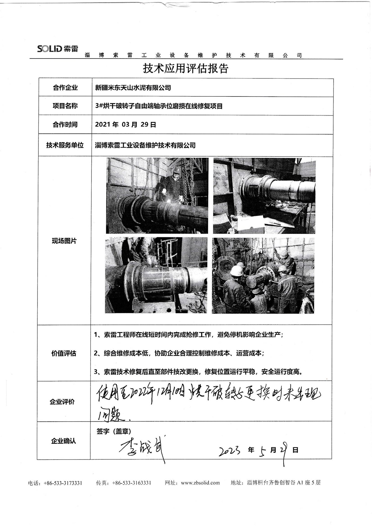 淄博索雷工業設備維護技術有限公司(簡稱:索雷工業)始創于2014年,是領先的碳納米聚合物材料開創者及應用服務商。公司業務及經營網絡遍及全國31個省、自治區和直轄市,目前,主營業務隨“一帶一路”已拓展至西亞、東南亞、東亞沿線近十余個國家,已與近3000家企業實現合作和提供過上萬次的在線快修技術支持與可靠性高價值服務。